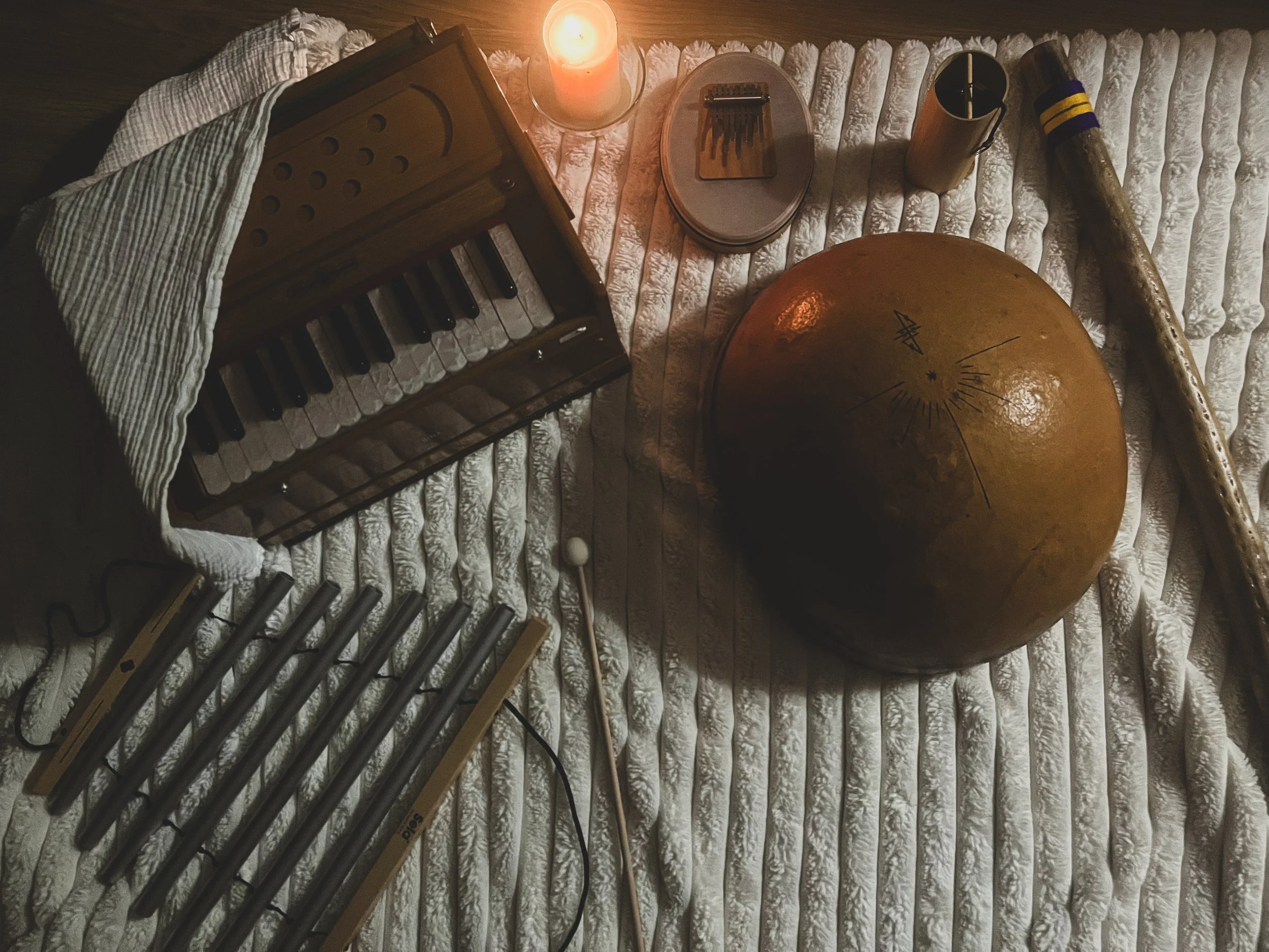Je vous propose une séance de 1h15 au sol avec des postures toutes douces soutenues par la voix et des instruments doux (harmonium, koshi, sansula, calebasse…).